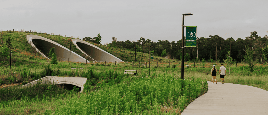 In 2023, Memorial Park celebrates the grand opening of the Kinder Land Bridge & Cyvia and Melvyn Wolff Prairie with “The Biggest Picnic in Texas.” 15,000 celebrants enjoy this long-awaited 100-acre space that reunites the north and south sides of the park by creating two nature bridges over Memorial Drive and provides vistas of both downtown and uptown Houston. The Emily Clay Family Scramble, made from pieces of reclaimed Memorial Drive, becomes one of the most photographed places in Houston. The prairie restoration re-introduces endangered native Gulf Coast prairie and additional wetlands to areas north and south of Memorial Drive.