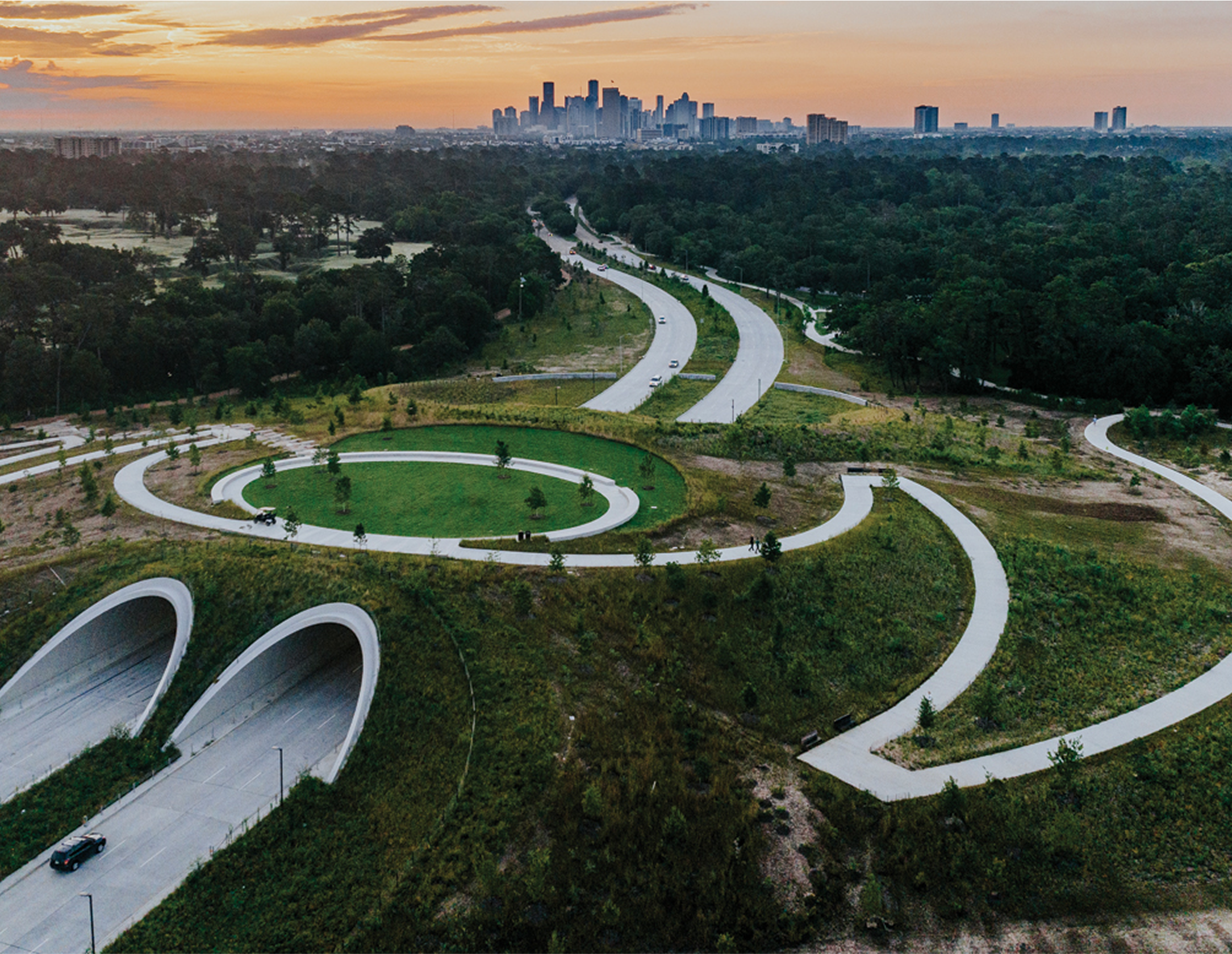 Once an oyster-shell road, Memorial Drive was paved in the 1950s and has grown to a six-lane roadway and median that divides Memorial Park’s 1,500 acres in half. The Scramble is composed of the section of Memorial Drive that was removed and realigned as a part of project construction.